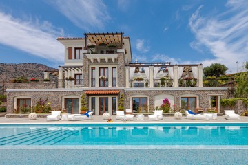 This exclusive 8 bedroom property offers panoramic views of magnificent sunrises and sunsets against backdrops of the Mediterranean sea and the cretan landscape. Amazing architecture, sophisticated furnishing, spacious rooms and areas as well as beautiful surroundings make this luxurious villa one of a kind
