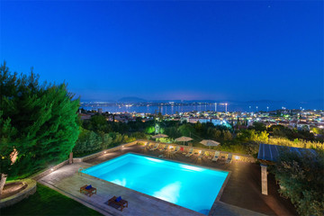 A luxurious, autonomous, fully equipped 3 floor, 3 bedroom villa with a master bedroom with ensuite bathroom, two double bedrooms and the best panoramic view towards Spetses and the gulf